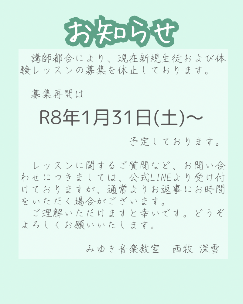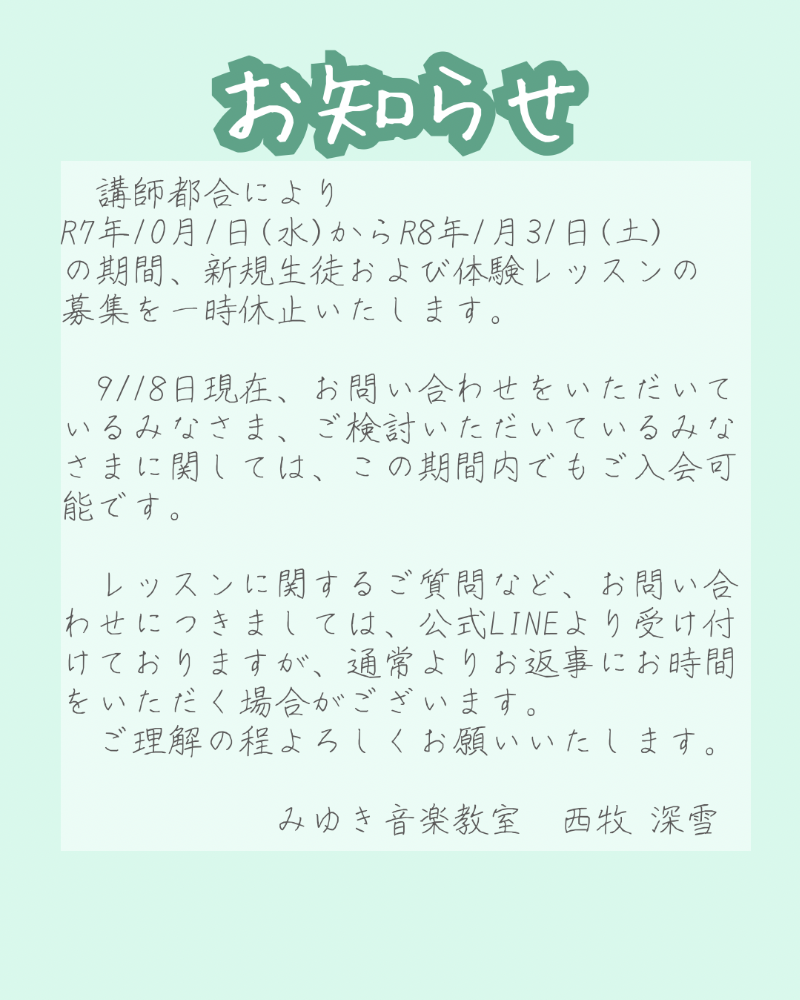 ◉遅刻や欠席の際は、お早めにご連絡ください。